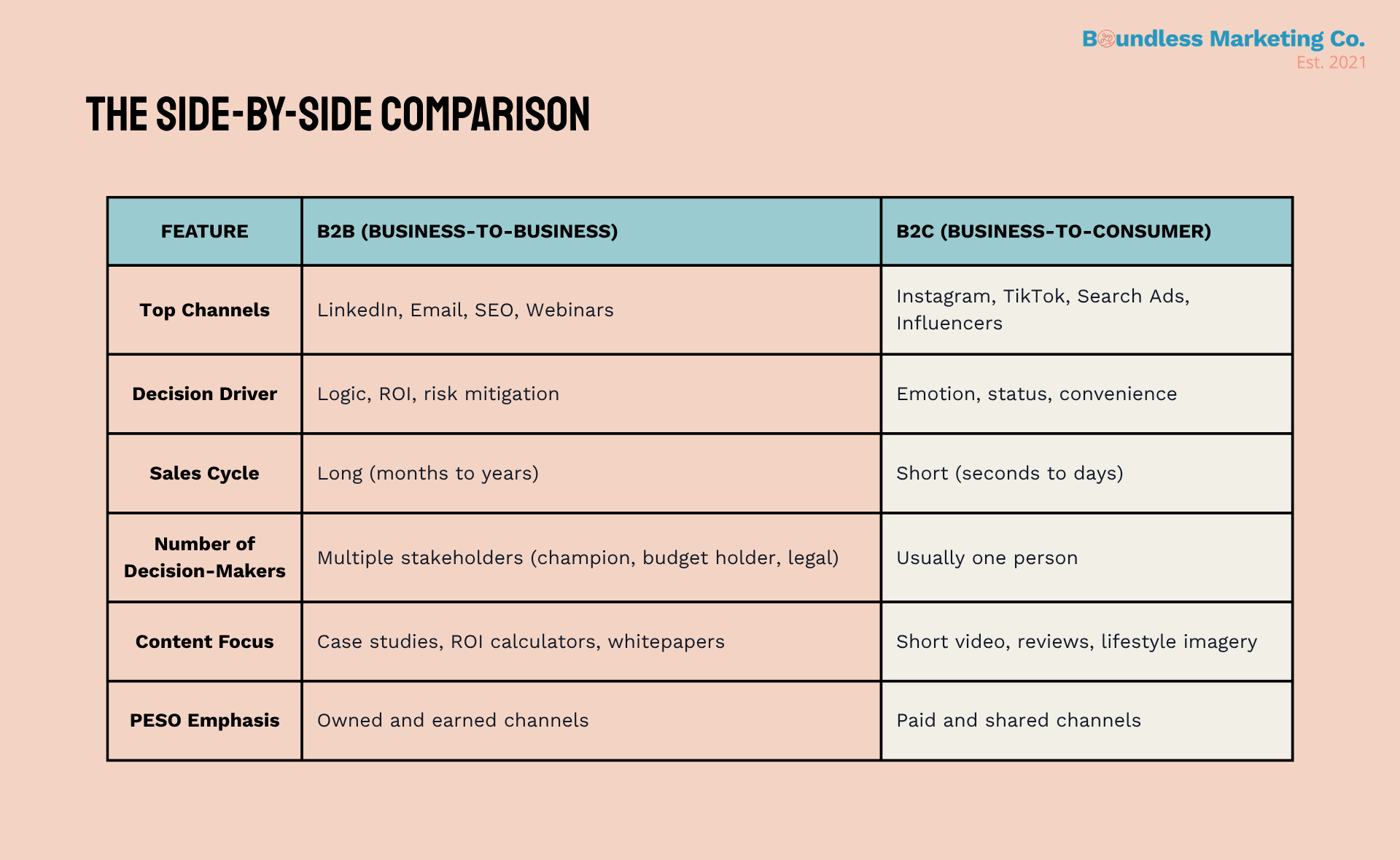 B2B and B2C marketing are not just different in degree. They are different in kind. The buyers behave differently, the channels work differently, the content formats perform differently, and the timelines are categorically different.