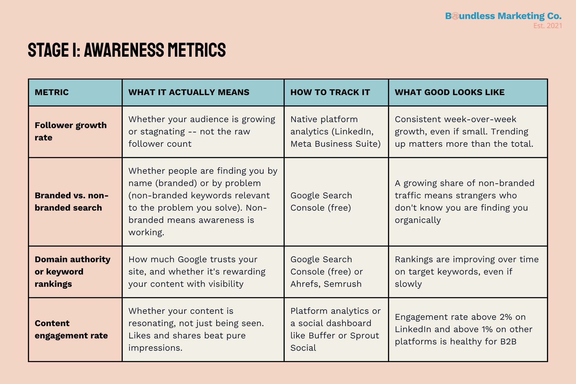 Awareness metrics answer one question: are the right people aware that you exist? Here are the four metrics that actually tell you that.